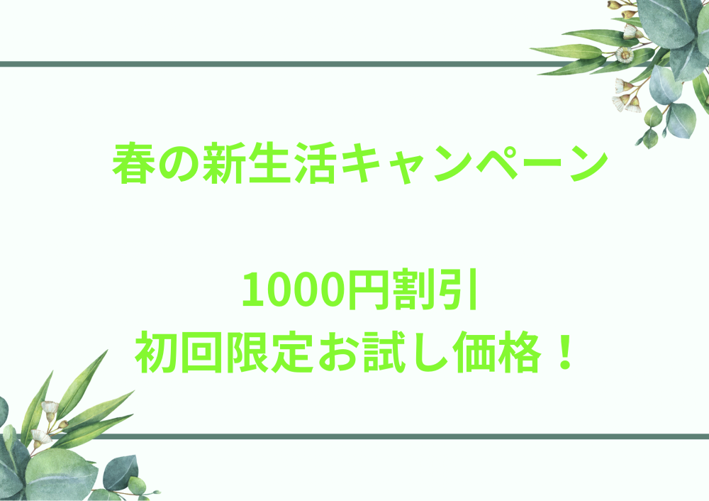 これから新年度春が終わるまでご新規様に1000円引きのキャンペーンです。